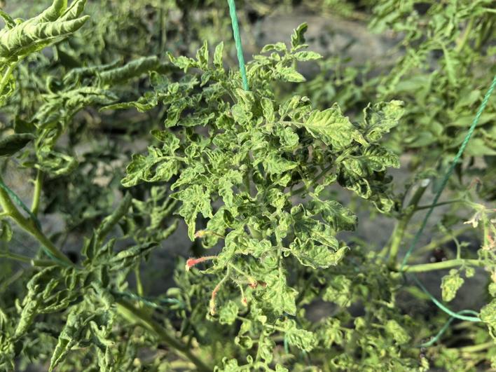 此外,药剂浓度过大、重复喷药、温湿度变化剧烈等因素也会导致番茄受害而出现小叶症状。受害造成的小叶一般在棚内规律性发生,植株叶片小、轻微皱缩,有时伴随着叶缘发黄等症状,植株根系正常。建议通过加强管理,合理用药,平衡棚内温湿度,并叶面喷施芸苔素、氨基酸等叶面肥进行缓解。