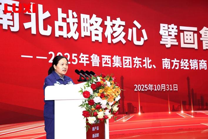 会议上,鲁西集团总经理助理孙爱芳作开幕致辞,并系统阐述了公司的核心战略。她深度剖析了当前农资行业的机遇与挑战,并首次明确将东北与南方市场定位为驱动未来增长的“南北两翼”。