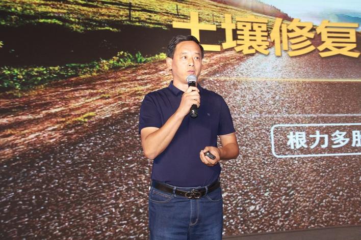 科学研究显示,土壤一般是由矿物质、有机质和微生物组成,相互促进相互影响,过度强调哪一项都会导致失衡。根力多公司的土壤修复三维模式可以有效改善这一问题。首先是微生物,它是土壤修复的三大支撑力量之一,修复研究进程分三个阶段:第一个阶段,增效促生复合菌株;第二个阶段,针对微量元素缺乏和失衡、土传病害的增加等问题,开发生防技术。研究到了这个时期,微生物可以做到抗病、抑病、拮抗等功效;第三个阶段,矿物土壤调理剂。面对多重酸碱问题最好是双向调节,利用离子交换的理论做到调酸调碱。我们始终坚持一个理念——微生物+有机+矿物土壤调理剂。将我们公司最擅长的土壤病害抑制和微生物转化技术纯发酵的有机物生产转化技术,再加上矿物型的土壤调理技术,三效合一,优势互补,养分均衡。