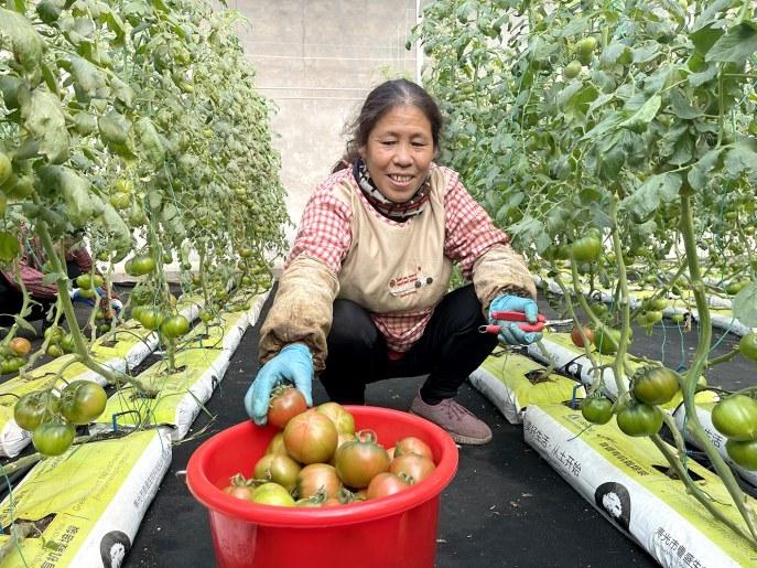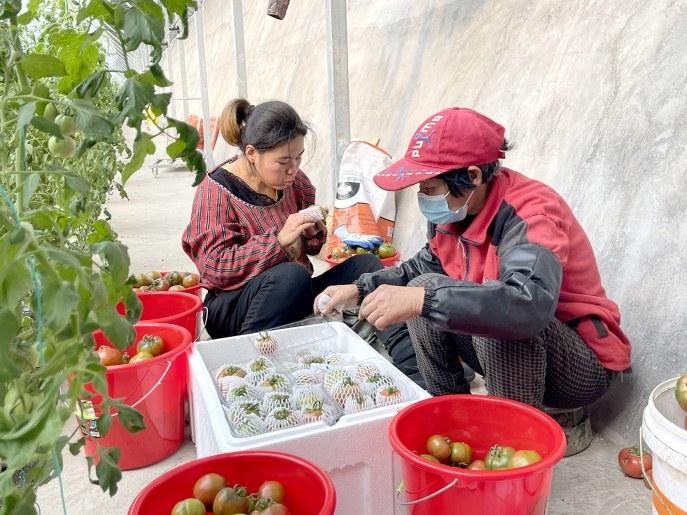 在2号棚采访时,正巧遇工人们给刚刚采摘的番茄分装打包。“我们园区种植的‘鲁盛鲜食番茄’口感好,特别受欢迎,这些刚采摘下来的番茄已经以每公斤16元的批发价格全部提前预定了,这个品种的鲜食番茄从6成熟就可以采摘了,你们也摘几个尝尝,保证吃出不一样的味道。”张国森热情地说。