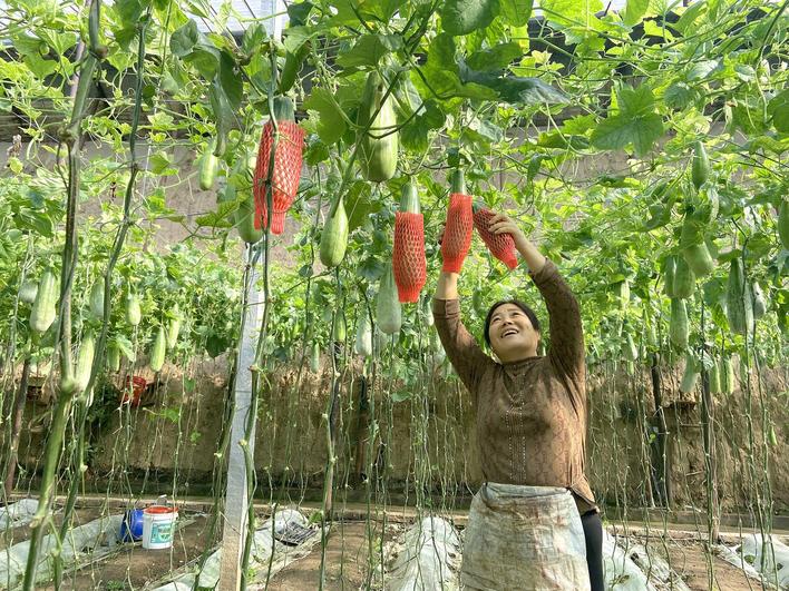 自然成熟的羊角蜜甜瓜,口感酥、脆、甜,相当可口。“采摘羊角蜜甜瓜是有窍门的,成熟的羊角蜜甜瓜闻起来有一股香甜味,瓜皮发白、有轻微黄皴,手摸上去有黏黏的感觉,像是往外渗糖一样。”山东省寿光市圣城街道的张九光说,羊角蜜甜瓜销售以现场采摘和直供超市为主。如今市场上,羊角蜜甜瓜的收购价8元/公斤至10元/公斤,他家的羊角蜜甜瓜因口感上乘,收购价16元/公斤,却依然很抢手。据介绍,该茬羊角蜜甜瓜于2020年12月12日定植,头茬瓜已卖完,二三茬瓜长至钢丝以上,让其自然留瓜,这样能一直采摘到七月份。2020年,3亩地的羊角蜜甜瓜就卖了20多万元,今年行情还好些,估计能超越去年收入。