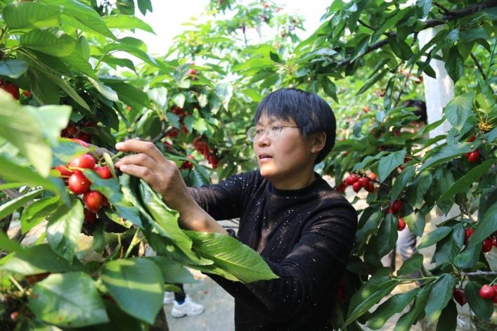 4月6日,山东省寿光市田柳镇北岭村的一处设施樱桃棚室中,农户正在采摘当季的鲜樱桃。多年来,寿光市北岭镇积极发展樱桃种植,从一个名不见经传的普通村庄,成为远近闻名的樱桃种植专业村。据北岭村党支部书记李树良介绍,目前,北岭村樱桃种植面积200余亩,分为露天种植和设施种植两种。村里已有七成以上的农户转型种植樱桃。农户将设施蔬菜种植经验与樱桃栽培相结合,发展出了一定规模的设施樱桃种植。北岭村的樱桃相比其他地区,总能提前上市,种类多,质量好,口感好,赢得了各地采购商和消费者的青睐。近年来,在当地党委政府引导下,村里也注册了自己的樱桃品牌,成立了专业合作社。随着种植规模的扩大,北岭村也正在探索做大做强樱桃产业。