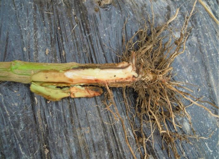 植株先萎蔫后死棵,一般开始先表现为植株局部中午高温强光时段轻度萎蔫,早晚能恢复,然后萎蔫症状加重,反复几日后,若得不到有效缓解,严重者就会死棵。这就提醒菜农要做到早发现,早治疗。因此,对于常发生蔬菜死棵的棚室,建议菜农在晴天中午勤到棚内转转,看是否有植株出现萎蔫的症状,若有则需及时发现导致萎蔫的原因,再对症治疗。对于异常植株,若地上部没有发病症状,则一般为根部病害,以根腐病为主,建议使用双霉乙酸铜+恶霉灵、沃康健组合等进行防治,再结合根系恢复情况,适当添加生根剂,促生新根,以弥补植株整体根量不足。