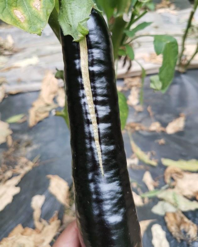 近日,记者在山东省寿光市稻田镇、纪台镇采访时,不少菜农反映棚内的长茄出现大小不等的裂口,症状轻的表现为像皴皮似的小裂纹,症状严重的裂口逐渐变大,表皮纵裂,而掰开看里面,内部并无其他表现。出现裂纹或裂口的茄子商品性全无,降低了种植效益。