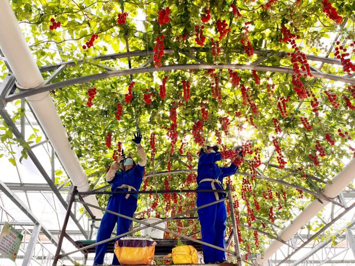 第二十三届中国(寿光)国际蔬菜科技博览会、2022寿光国际蔬菜种业博览会于4月20日开幕。其中,菜博会九号馆是创新研发蔬菜品种种植展示馆,也是潍坊科技学院贾思勰农学院产学研实践基地。该馆聚焦自主研发蔬菜品种及民族种业,设计了最具推广价值的蔬菜新品种种植展示区、不同年代番茄品种演化展示区、蔬菜种植全程绿色防控技术展示区、无土栽培高产高效栽培技术展示区、生物组培技术展示区五大区域,展示了最新研发和当前最具推广价值的黄瓜、番茄、茄子、辣椒等蔬菜新品种200多个以及灵芝组培、蔬菜花卉单倍体育种等技术。潍坊科技学院自主研发的许多优良蔬菜品种在这里集中展示。 本报记者王凯旋