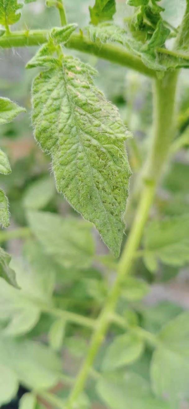 防治措施:勤用甲壳素、海藻酸、生物菌肥等养根性肥料,叶面喷施甲壳素、氨基酸、海藻酸等叶面肥,同时注意调控棚内温湿度,避免其剧烈变化。