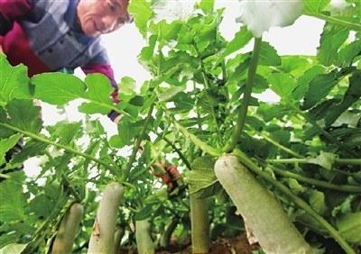 据介绍,浮桥菜农对于市场可谓是了如指掌。当一年三茬栽培时,萝卜的上市时间基本上在三大节日(五一、中秋、元旦)期间。第一茬立春前后播种,五一期间收获;第二茬6月中旬播种,中秋节前收获;第三茬10月上旬播种,元旦之前收获。赶上这三个时期,萝卜均能卖出高价。由于萝卜怕重茬,因此多数菜农选择的是轮作栽培,当第一茬萝卜收获以后,就换作黄瓜或丝瓜,直至10月末,当黄瓜、丝瓜拔园后,再播种萝卜,从而避免重茬的不利影响。