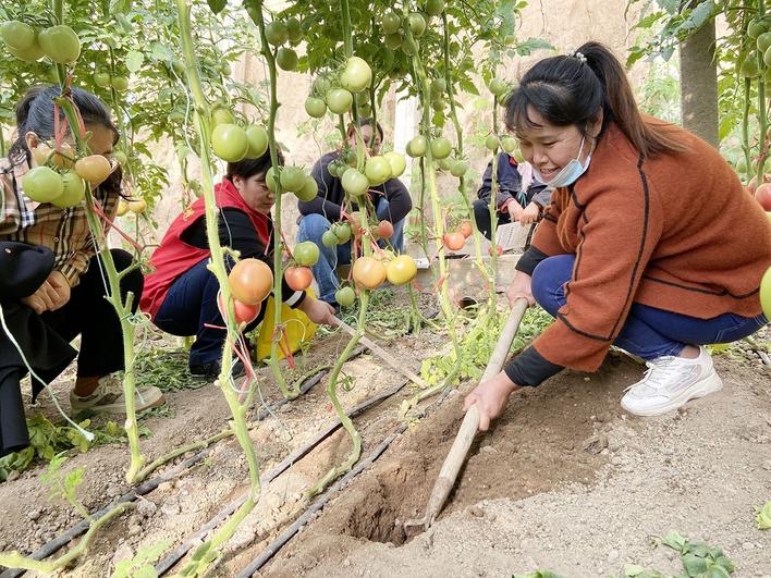 科学施肥,蔬菜长势健壮,抗逆性强,病害发生少,产量、品质都有明显提升。近年来,越多越多的菜农意识到科学施肥的重要性。蔬菜换茬前或生长过程中,部分菜农会进行土壤检测,并根据检测结果灵活调整用肥方案,为蔬菜营造良好的土壤环境。图为山东省寿光市化龙镇一菜农棚内的个别番茄植株长势偏弱、膨果慢,但地上部植株无病变,为寻找原因,菜农从根系的侧边挖土发现根系的根量少、根弱、无病变。对此,菜农决定从养根入手,配合叶面补肥的方式进行缓解,确保果实的产量和品质。 本报记者 刘志梅