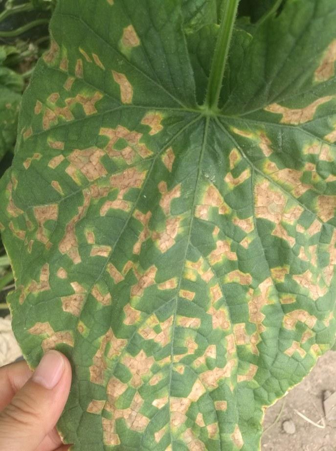 黄瓜霜霉病是一种流行性病害,当棚室通风不畅,造成棚内湿度大,夜温低,叶片长时间结露,就会导致病害流行,发病适温在20℃-25℃,空气适宜相对湿度85%时发病速度最快,从发病到拉秧,往往仅需一周的时间。