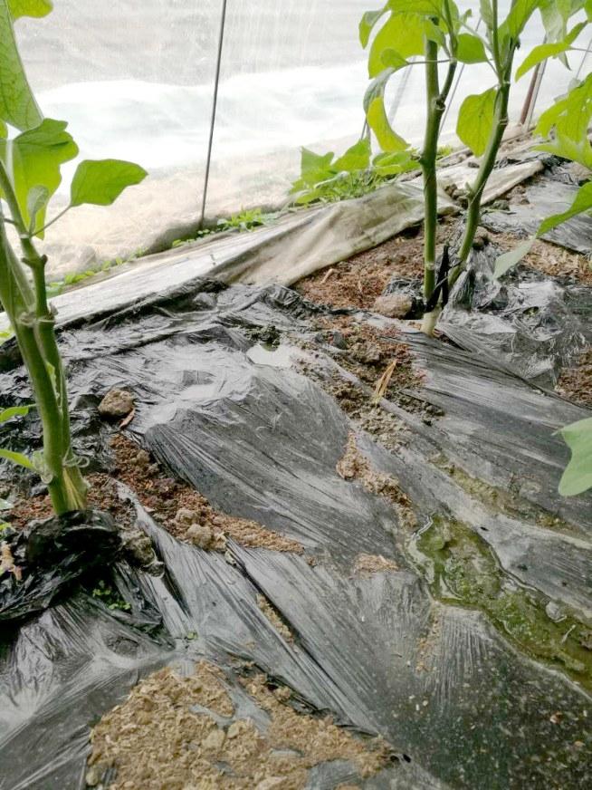 除了通风排湿,操作行内铺设稻壳或碎秸秆等有机物对降低棚室内湿度也具有不错的效果。这些有机物不仅能够减少土壤水分蒸发,还能起到很好的吸湿作用。更重要的是,铺设后土壤透气性好,不会导致土壤板结,而且换茬翻地时将有机物深翻到土壤中,还能提高土壤有机质含量,培肥地力,可谓是一举多得。