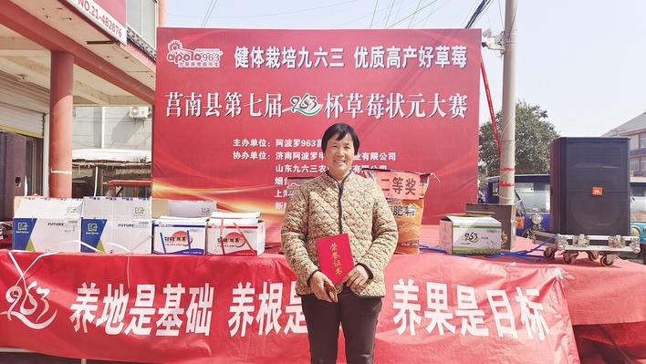 随着气温回升,春意越来越浓,香甜的草莓进入到丰收季节。3月9日,莒南县大店镇迎来了第七届“莒南县963杯草莓状元大赛”。本次状元大赛由阿波罗963莒南总经销主办,济南阿波罗甲壳素肥业有限公司、山东九六三农业科技有限公司、烟台兴茂生物科技有限公司、上海亮米生物技术有限公司、新胜利工业集团有限公司等企业单位协办。