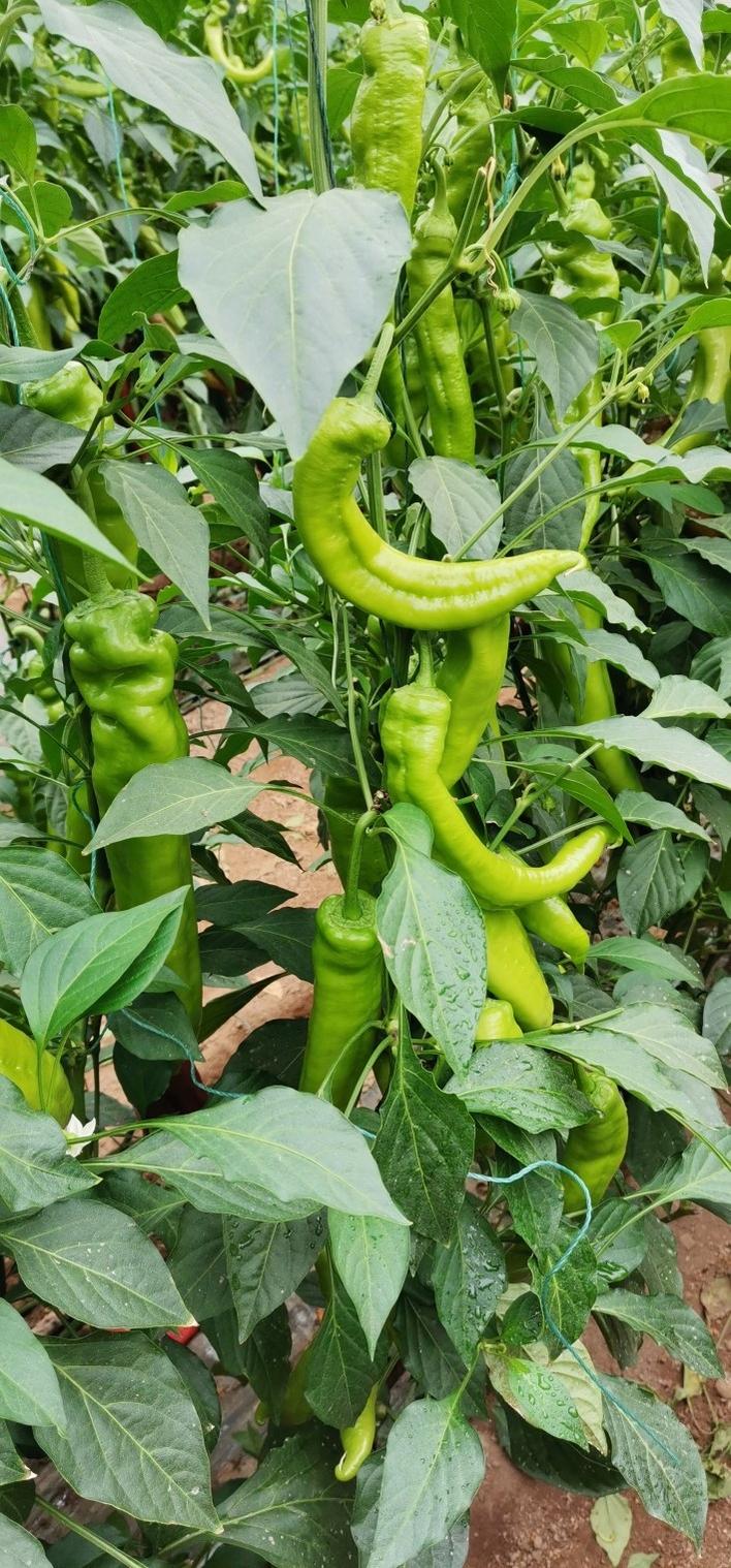 另外,幼果在生长过程中被叶片或枝条阻挡,也会出现弯果。建议菜农及时疏枝,让尖椒生长没有阻碍。疏枝时要将尖椒的内膛枝及结果主枝下部不结果的侧枝疏除,以防阻挡果实的生长。发现果实被叶片及枝条阻挡时,及时将果实移开,让其垂直向下生长。