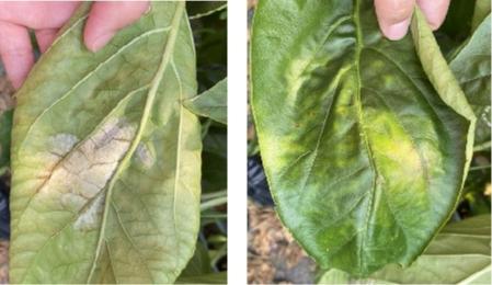 彩椒白粉病在叶片正反两面的表现症状