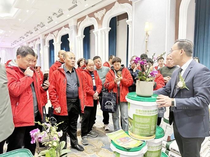 年会茶歇期间,KOMU家族系列产品、“丰田二号”“鲍利格·鲁美特”“黑方砖”“班顿”等产品展位前,人头攒动。张树庆详细地介绍每款产品的特性及田间应用效果,还不时与熟知情况的经销商互动,对经销商提出的每一个问题对答如流。每一款产品都如他一手带大的“孩子”,深知其脾性和特长,引来众人的点赞和肯定。