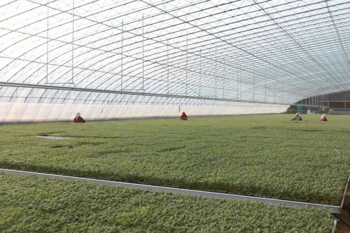 步入山东寿光古城街道一处种子研发育苗基地里,满屏绿色映入眼帘,从浅绿到深绿,无限生机在这里孕育。工人们将一粒粒进行过无毒杀菌处理的种子点播进育苗穴盘中,浇水、保温,等待发芽。而前一批播种的种子,一个个已经顶破了土层,两三天就能蹿一大截,长势喜人。“每种番茄幼苗都有代表自己身份的特殊‘身份证’,有名字有日期……”基地负责人介绍。一方面,他们对番茄苗严格把控,进行定植,淘汰弱病的劣苗,同时将缺苗穴盘补齐,避免苗挤苗,从而加强幼苗营养、光照面积,控制旺长,促使幼苗加快生长,提高保湿、保温效果,培育齐苗壮苗;另一方面对小苗、弱苗喷施营养液促进弱苗、小苗快速生长转壮苗,提高产量效益。