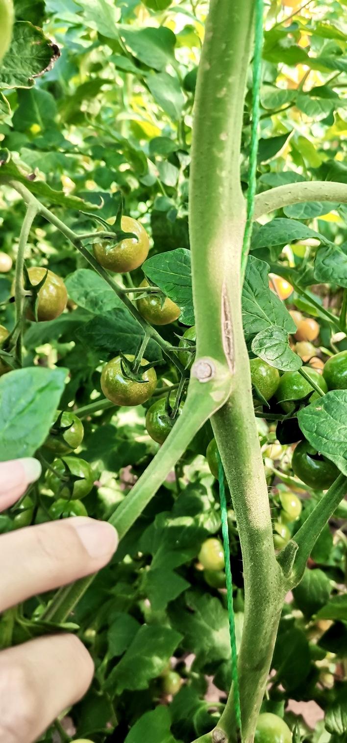 很多情况下,茎秆的损伤多是日常操作不当造成的,如采摘果实或整枝打杈的动作不利索、落蔓力度较大等。对此,菜农应尽可能地减少这些不当操作。整枝打杈时,选择晴好天气,并在植株含水量小的时候进行。采摘果实时,尽可能地从果实果柄的离层处掐断或剪断,不可生拉硬拽,伤及茎秆。
