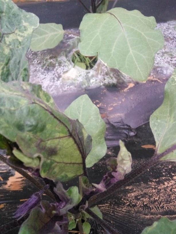 症状描述:茄子上部叶片皱缩不平,花叶。