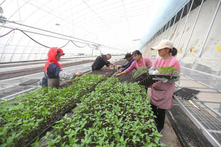 人勤春来早,奋进正当时。2月20日,走进位于山东省潍坊市寿光羊田路附近的一家种苗繁育基地育苗中心温室大棚内,工人们正忙着播种、捡苗、装盘,一派热闹繁忙的景象。