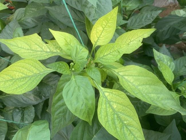 当前一大茬彩椒、越冬茬茄子进入生长中后期,植株陆续表现出早衰症状,不少菜农见杈就留,见花就点,尽量多结果,提高产量。可是这样做的直接后果就是导致生殖器官与营养器官养分争夺加剧。点花的作用是促进坐果,同时促使有机营养集中流向果实,而当前时期植株整体制造的有机营养不足,勉强或不足以维持正常生长,过量点花留果后,养分被迫流向果实,导致营养器官“饥饿”生长,植株长势越来越弱,上下黄叶就在所难免。