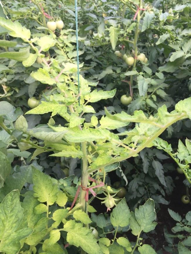 气温回升后,主枝冒出的新杈增多,尤其是生长点部位,少则三个新杈,多则五六个,主枝中下部也均有新杈冒出,这些新生的营养器官生长较快,养分争夺剧烈。而植株根系本来吸收的矿质养分就极为有限,被过多的营养器官相互争夺后,最终被分配到新杈叶片的养分就更少了,必然会出现黄叶现象。