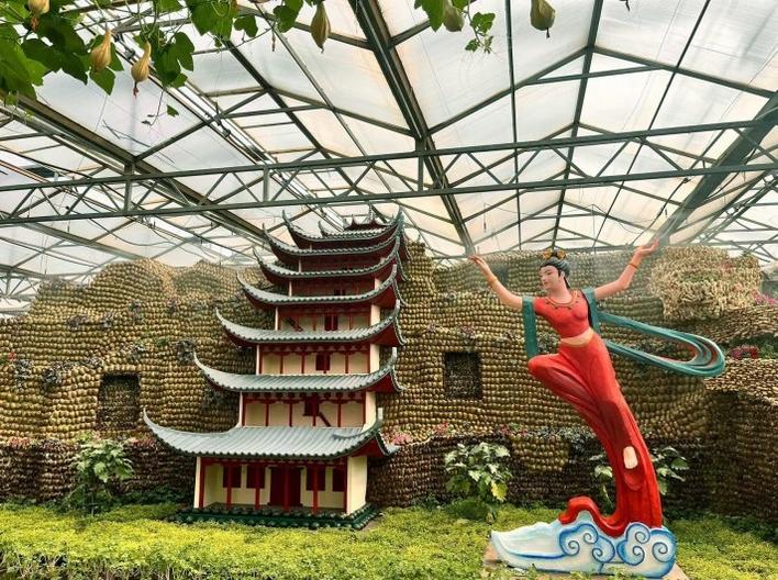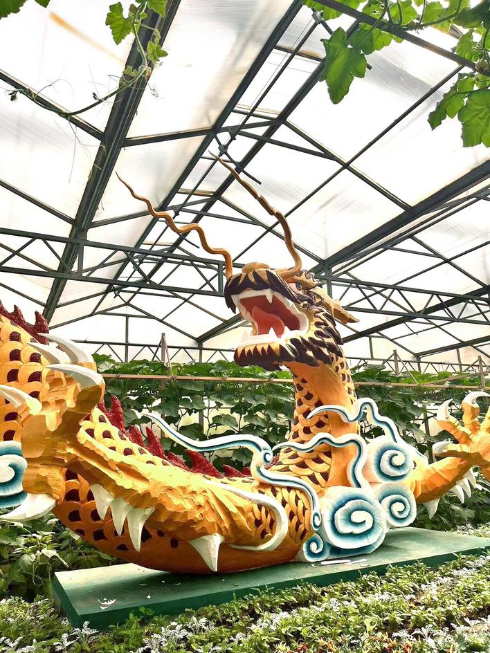今年是甲辰龙年。龙作为中华民族的图腾,承载着深厚的文化内涵和民族情感,被视为吉祥之兽和权力、尊贵、智慧、力量的象征。龙文化源远流长,已有8000多年的历史积淀。“龙行龘龘”景点,运用蔬菜文化艺术,通过实景模型、场景还原等方式,展示了龙的起源、龙的演变、龙的国度。景观气势恢弘,龙首高昂向上,龙身翻腾冲天,尽显“纵横十万里,浩然天宇内”的威武雄姿,令每一位“龙的传人”血脉偾张,精神振奋,励精图治,再创龙跃神州新辉煌。“鱼跃龙门”景点采用雕刻、仿真、粘贴、彩绘等艺术手法,生动地展现了鲤鱼跃龙门的神话传说。巨龙雄劲,锦鲤灵动,视觉强烈,震撼人心。激励人们坚定信念,“咬定青山不放松”,为实现个人理想和民族复兴的强国梦而不懈奋斗。