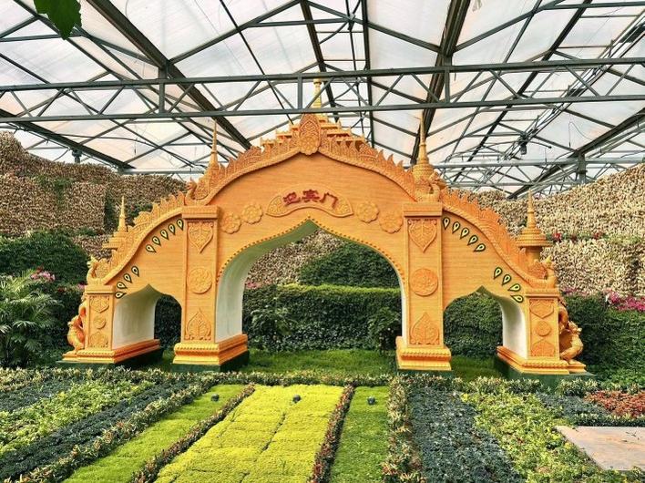 挂果、盆栽、扦插、粘贴、雕刻、仿真等艺术手法,创制成多元一体、多态融合、多姿多彩、壮观磅礴的“大美中国”景点。它凝聚中国智慧,绽放中国魅力,彰显中华文化底蕴,蕴含着独具特色的民族精神,展现出大美中国,江山壮丽,人民豪迈,前程远大。