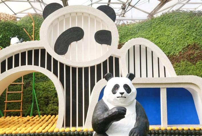 “江山多娇”景点,以中国十大传世名画千里江山图为蓝本,以蔬菜文化艺术为表现手法,将经典文化符号融合时代精神,描绘出祖国的锦绣江山。峰峦起伏绵延,江河烟波浩淼,气象万千,壮丽恢弘。一幅生态良好的美丽中国画卷徐徐展开,入眼皆是青山绿水,美景一片。这是人们对美好生活的共同向往,昭示着绿水青山就是金山银山。十二生肖是中华文明传承数千年的经典体现,承载了中国重要的文化基因与精神文化需求,根植于每位国人的心底。“瑞兽生肖”景点,运用雕刻、仿真等艺术手法再现十二生肖动物,妙趣横生,引人入胜,每一位观众都能找到自己对应的生肖属相。“大美中国”景点,选取长城、大运河、长征、黄河、长江五大国家文化公园中有代表性的景观,采用蔬菜