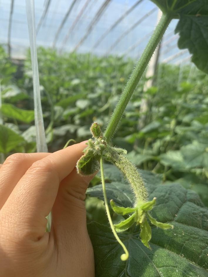 钙可以促进细胞壁的形成,从而保证植物组织的稳定性。当钙缺乏时,细胞壁不能正常形成,细胞养分外渗,出现死亡,因而更容易出现脐腐、皴裂、烂头的情况。近段时间气温忽高忽低,有的黄瓜植株出现大面积幼叶卷曲、新叶抽出困难,叶尖之间发生粘连现象,严重的甚至出现叶尖和叶缘发黄或焦枯坏死,这些也是缺钙的症状表现。