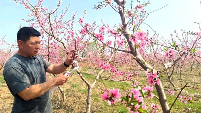 “咱们鸿业土地合作社的桃花开了,欢迎大家来赏花、打卡,预定我们的桃子。”近日,在山东省广饶县稻庄镇南寨村的广饶县鸿业土地股份专业合作社百亩桃园内,朵朵桃花竞相绽放,95后“新农人”徐秀伟正在用他的“新农具”——手机拍摄短视频推介桃园,吸引游客前来赏花拍照。
