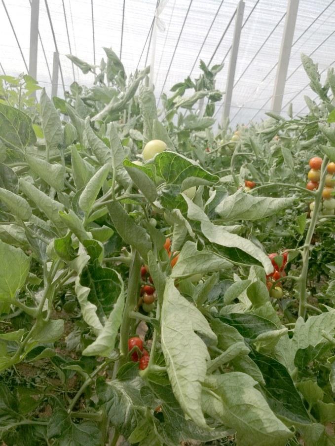 进入立夏后,高温强光天气会逐渐增多,为避免高温强光引发卷叶,建议菜农及时覆盖遮阳网或喷洒降温剂,并加强通风,让棚外空气与棚内空气形成对流,加速棚内热空气的排出,从而有利于降温。中午前后高温时段,可用喷雾器喷淋清水,或在棚室钢丝处安装喷灌设施,建议一次喷洒10分钟,间隔一段时间再喷一次,利于叶片恢复。此外,间隔喷施甲壳素、海藻酸类功能型叶面肥,在叶片表面形成保护膜,可提高叶片的抗逆能力,降低叶片异常发生几率。