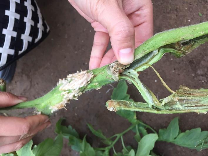 菜农进行农事操作时,选择连续晴好天气进行,留出促进伤口愈合的充足时间。同时要注意避开早上露水多,尚未干燥的时间段,避免细菌传播侵染。在去掉侧枝、老叶、果穗的时候,可在基部或尾部保留一段,一般三四厘米即可。有条件的话可以用消毒的刀片或剪刀隔断或剪断,保证伤口平整,利于快速愈合。 农事操作完毕后,要及时喷洒杀菌剂,为植株覆盖一层“防护膜”,既促进伤口愈合,也避免细菌的侵入。例如喷洒百菌清,甲基托布津,铜制剂等,重点喷洒茎秆及叶片,有了“防护膜”保护,伤口的愈合