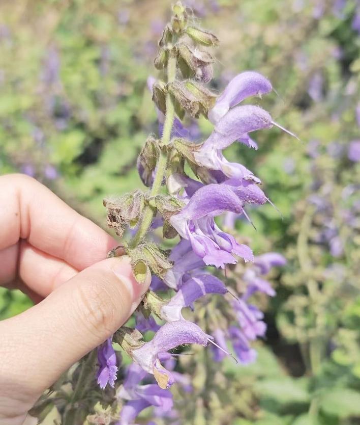 随后,记者咨询了附近的村民得知,这是丹参,属多年生直立草本植物,一般在4月-8月开花,花后见果。丹参根肥厚,叶片常为羽状复叶,顶生或腋生总状花序;花冠紫蓝色,花柱远外伸,小坚果黑色,椭圆形。其根入药,内含丹参酮。