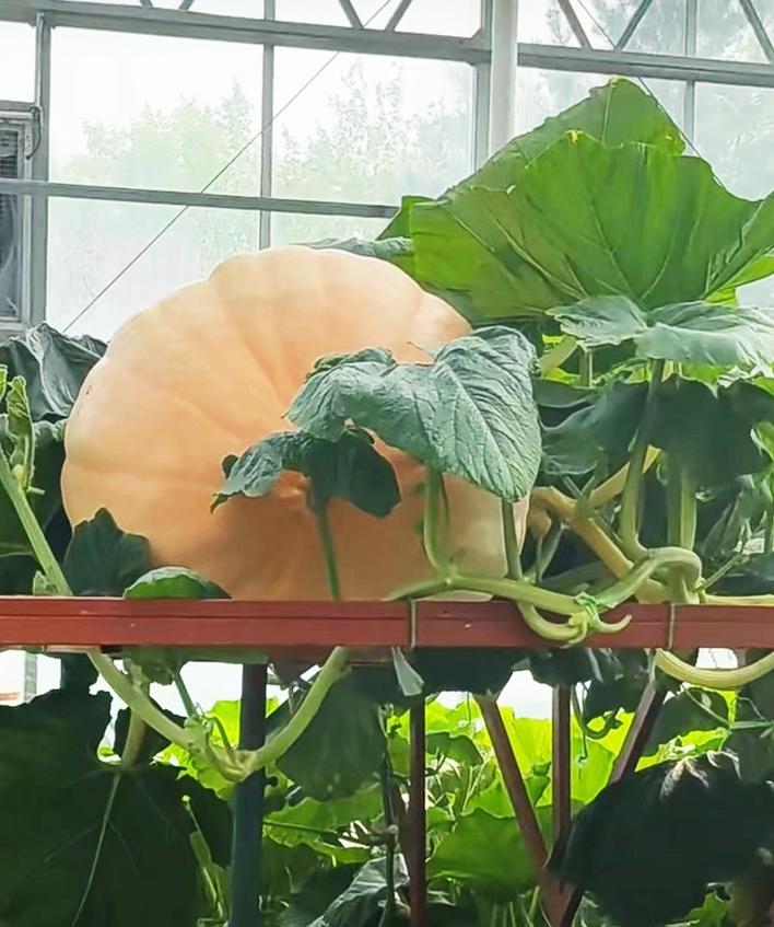 中国(寿光)国际蔬菜科技博览会(以下简称菜博会)10号馆内的巨型南瓜展示区,几乎是所有游客的打卡地。一个个巨型南瓜生长在藤蔓间,最大能长到500多斤,十分惹眼。