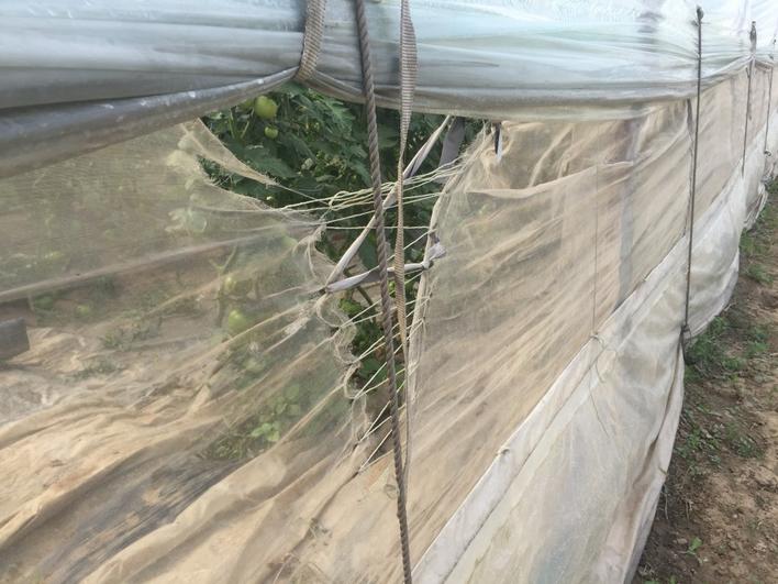 记者建议:棚室周边的杂草、拔园的植株茎秆等及时清理,放到垃圾集中存放点,远离棚室,清除掉蓟马的栖息繁殖场所,可在很大程度上减少虫源基数。同时在棚室前脸、顶部通风口、门口等与外界相通的地方设置目数较高的防虫网,严防蓟马潜入。但是想要真正做到严密防虫,防虫网不是安上就可以了,还需要严密。通过在防虫网四周设置边裤,穿上钢丝并加以固定,不会受到风力影响,且防虫网与棚膜、地面紧贴,避免漏洞产生,达到防虫网的严密性。