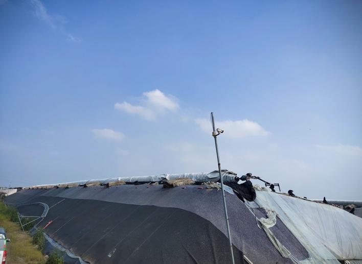 后墙防雨:后墙裸露在外,为了预防墙体被雨水冲刷,菜农可通过覆盖薄膜、无纺布或使用水泥、砖瓦的措施保护墙体。为节约成本,有些菜农使用大幅的旧薄膜将墙体覆盖,但是旧薄膜老化速度快,也可能带有小破洞或小裂痕,遇大风强降雨天气,很容易被刮破。若雨水一旦进入,墙体很容易被浸泡,且不易恢复干燥。建议菜农选择耐老化膜,并在塑料薄膜之上,加盖一层防晒材料,可减少日光的照射。平时要注意检查薄膜是否有破损,一旦发现破损及时修补。