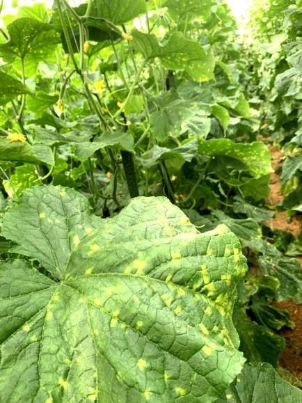 另外,留瓜过多也是关键原因之一。因近段时间,黄瓜价格一直较高,有些菜农为了多卖钱,短时间内蘸多支瓜,导致畸形瓜增多,植株抗病能力降低,病害严重。建议大家在留瓜时,留瓜数量应由植株长势来确定,对于过多的瓜纽、畸形瓜等要及时疏除,减少不必要的营养消耗。