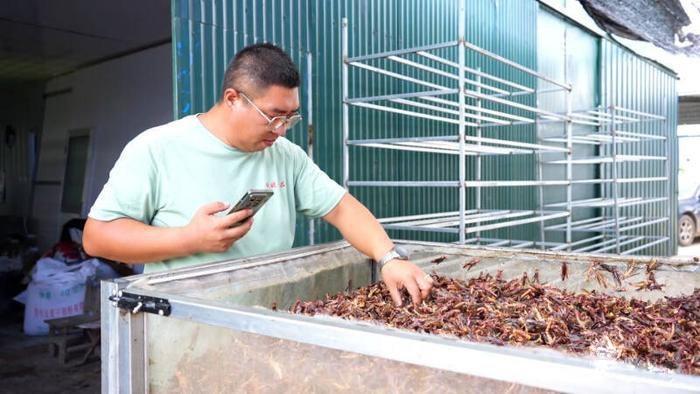陈海磊与蚂蚱的结缘,始于一次偶然。几年前,他在网上浏览时无意间看到蚂蚱养殖的信息。起初,他只觉得新奇。经深入了解后,他发现蚂蚱不仅生长周期短、繁殖能力强、不愁销路,而且养殖不占用大量耕地。他决定回家乡养蚂蚱。
