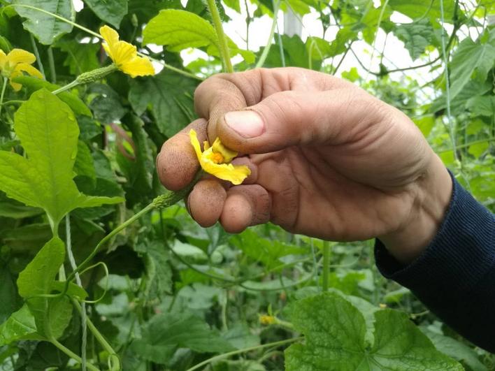 与黄瓜蘸花不同,苦瓜进入开花期后,菜农以人工授粉为主,授粉时要求雌花、雄花花芽分化良好,且雄花花粉多,这样才能保证苦瓜多坐瓜、坐好瓜。但冬季不良天气多,遇到连阴天或雨雪天气,会影响花芽分化质量,导致雌花、雄花数量减少、花粉少、难以正常授粉,降低苦瓜产量。因此,建议菜农通过加强管理,促进花芽分化。