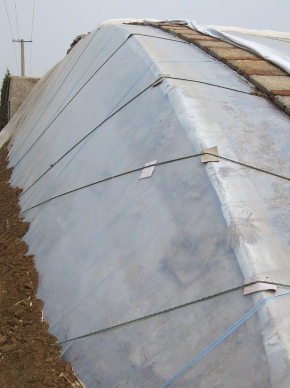 在安装好保温被以后,棚面钢丝就开始承受一定的压力。如果再遇降水,那么棚面钢丝承受的压力就更大,所以当前要检查一下棚面钢丝与地锚的连接处,看是否捆绑紧实。如果出现松动或钢丝弯曲处有裂痕,要立即进行处理。