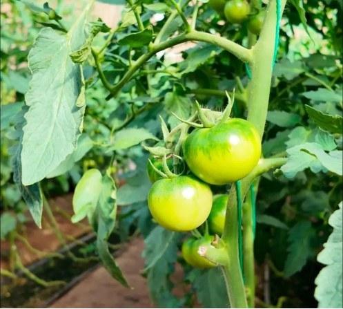 氨糖钙镁喷施、冲施均可,她是在定植缓苗后、花芽分化前、结果期冲施了三四次即可,结果前期1桶冲施两亩地,盛果期1桶一亩地。目前,草莓番茄坐果好,没有脐腐病,裂果几乎没有,果型周正,颜色鲜亮,整体病害也少了很多。“我对氨糖钙镁的效果十分满意。”