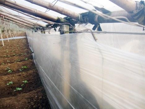 根据种植户实践经验,冬季在大棚前脸内侧设置二膜,对大棚前脸处蔬菜的增产增收,效果较好。