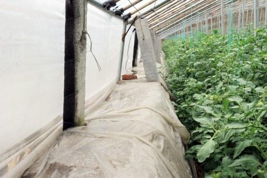 夜间设置“围裙”是增加大棚前脸处温度的一项有效措施。所谓设围裙,就是夜间在放棉被时,在大棚前脸处再盖上一层无纺布或草帘子,以增强大棚前脸处的保温性能。