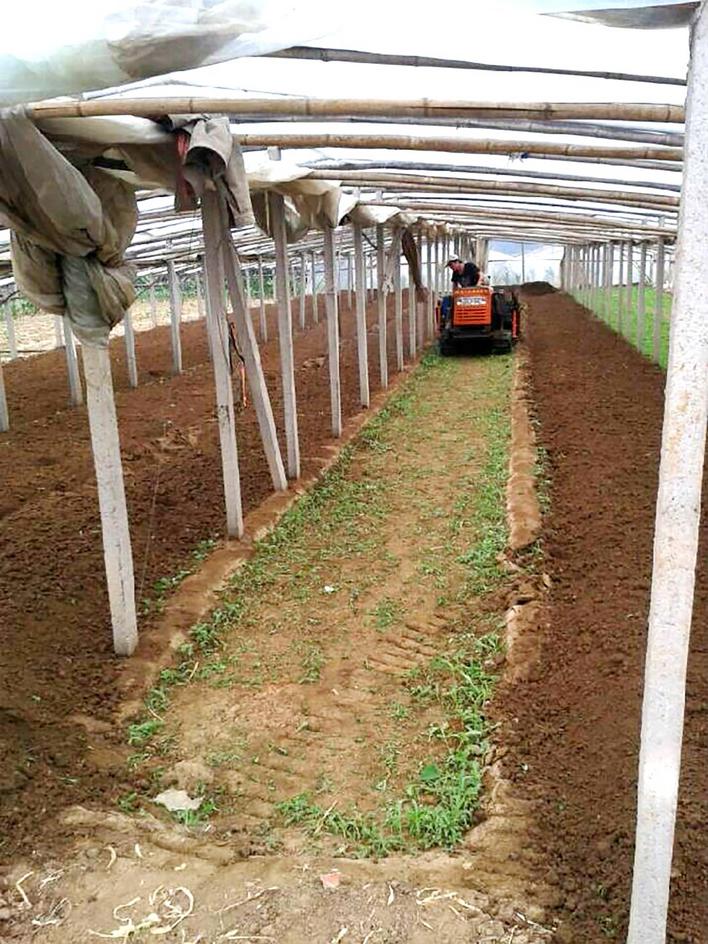 如果大棚土壤黏性比较强,除了蔬菜定植前深翻土壤,最好再结合旋耕机旋耕2次-3次,将坚硬、厚重的犁底层打破,使土壤结构得到合理优化,形成虚实并存的土壤结构,利于透水透气,缓解土壤的板结、黏重现象。