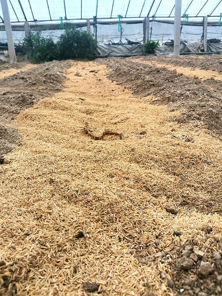 而深翻土壤可以大大减轻上述现象。建议菜农使用深翻机深翻土壤,打破原有的犁底层,增加土壤的耕作层深度,将上层板结的表土翻到底层,将一定深度的紧实土层变为疏松细碎的耕层,从而增加土壤孔隙度,增强土壤透气性。此外,也可采取秸秆还田的措施,将大田作物秸秆用于大棚土壤,其腐解过程中可吸附利用土壤中的矿质元素,同时还能增加土壤有机质,改善土壤透气性。