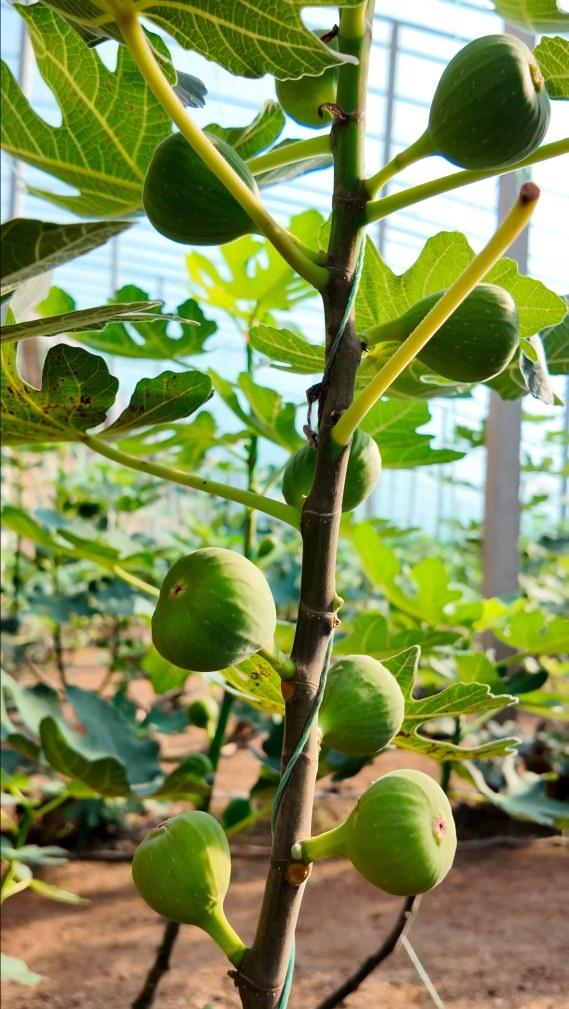 记者在大棚里看到,有少数无花果已经成熟,个头也比较大,大的有100克左右,五六个就能到一斤。据介绍,无花果的采摘期比较长,从12月份一直能持续到次年8月份左右,亩产量预计7000斤。“中间也可能会因天气问题,影响持续坐果能力,导致产量降低。”桑九强说,管理上,无花果对气温以及光照比较敏感,这些因素都需要控制好,今后做好棚室保温工作很关键。