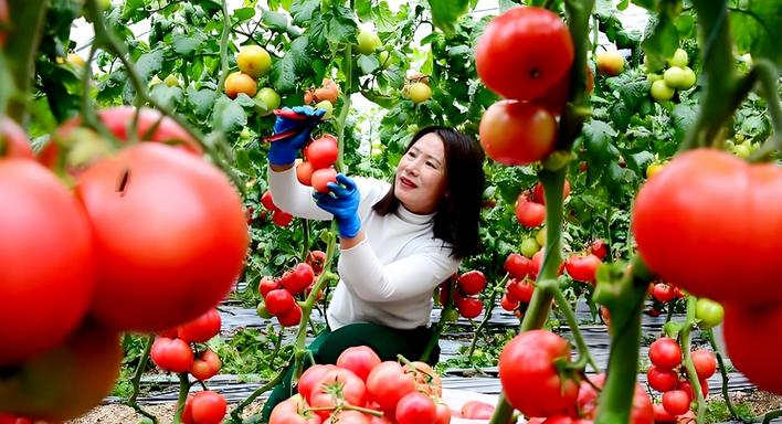 种植户忙着采摘西红柿供应市场。近年来,郯城街道积极调整和优化农业产业结构,鼓励种植大户大力发展设施农业,培育凸