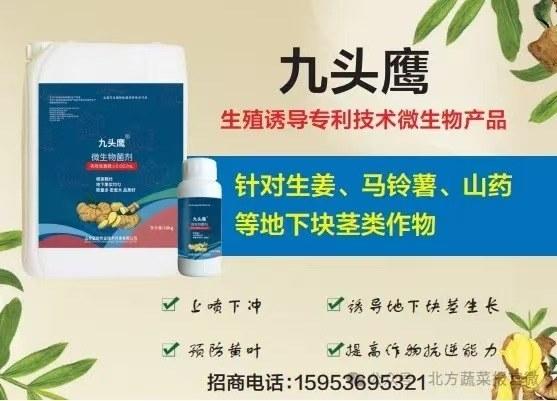 “九头鹰”是山东蓝驼农业技术开发有限公司专门针对生姜、马铃薯、山药等地下块茎类作物,研发的一款生殖诱导专利技术微生物产品。上喷下冲为最佳使用方式,而且使用时期越早,效果越明显。