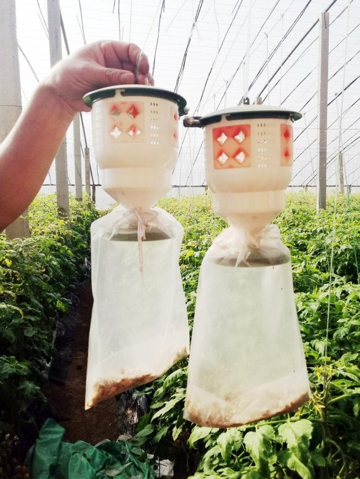 昆虫信息素诱控。迷向干扰交配防治番茄潜叶蛾,或使用棉铃虫性诱剂、食诱剂等诱杀棉铃虫成虫。