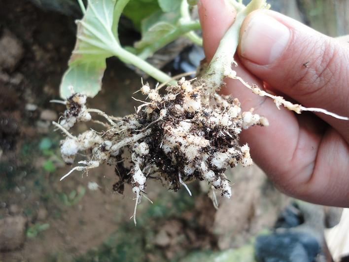 近年来,市场上推出了不少植物源农药,对根结线虫效果良好,对根系伤害也小,可在土壤中自然分解,对环境非常友好。如以苦参、芦笋等植物提取物为主,或者以辣根素等为主的植物源农药,线虫防治效果在90%以上。线虫对根系伤害很大,使用时最好配合氨基寡糖素、海藻酸等功能性肥料,促进新根再生,提高蔬菜长势。也可选用化学药剂阿维菌素或噻唑膦与氨基寡糖素等复配而成的药剂,同样具有良好的杀线效果。