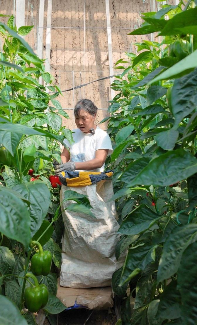 这款小推车采用独轮设计,在狭窄的彩椒行内也能灵活穿梭,可以一边行走一边采摘,一个人就能完成以往多人的工作量,人力成本大幅降低。小推车还可根据实际需求上下调整高度,低矮或较高的植株都能轻松应对。